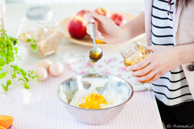 1. Twaróg miksujemy z jogurtem i dodajemy miód.