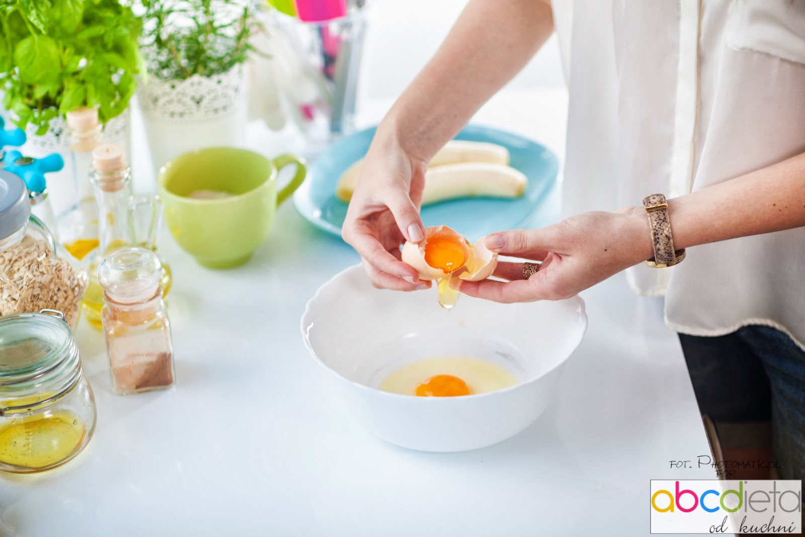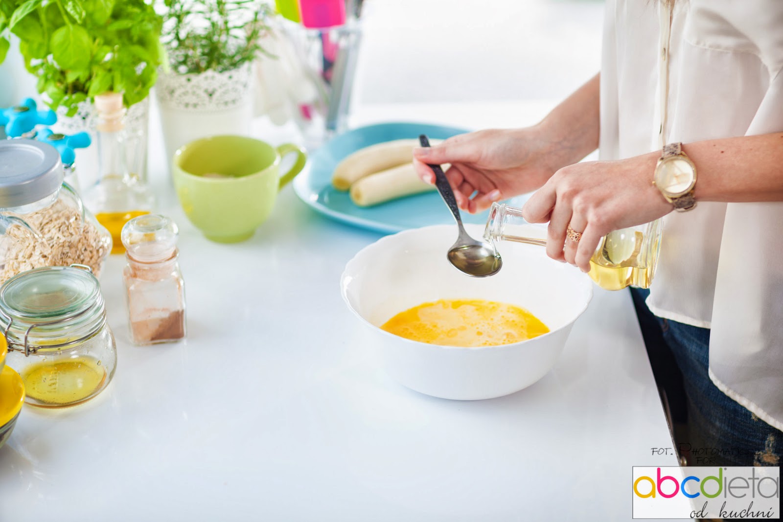 Nie od dziś wiadomo, że śniadanie to najważniejszy posiłek w ciągu dnia. Powinno stanowić 25% zapotrzebowania energetycznego. Nie sięgajmy z rana po śmieciowe jedzenie, a już tym bardziej nie omijamy tego posiłku. Jego brak prowadzi do przedpołudniowego zmęczenia i jest przyczyną zmniejszenia zdolności poznawczych. Pamiętajmy, że śniadanie spożyte dwie godziny po przebudzeniu, nie jest już śniadaniem! Osamotniona kawa wypita z rana, także do śniadania nie należy. Badania naukowe wykazują, że osoby, które regularnie spożywają śniadania są szczuplejsze. Poza tym, zmniejsza się częstość występowania takich chorób jak otyłość, cukrzyca i choroby serca. Po przebudzeniu nasz organizm potrzebuje zastrzyku energii, czyli „dobrych kalorii”. Najlepszym ich źródłem są produkty z pełnego ziarna (płatki owsiane, pieczywo pełnoziarniste), owoce i niskotłuszczowy nabiał. Osobiście polecam owsiankę. Jest pyszna i dostarcza energii na długą część dnia. Poza tym jej przygotowanie nie zajmuje więcej niż 10 minut. Wystarczy 4 łyżki płatków owsianych i łyżkę suszonych owoców z pestkami słonecznika lub orzechami włoskimi zalać wrzącą wodą i odczekać chwilę, aż zmiękną. Następnie zalać ciepłym mlekiem i gotowe. Jednak zdaję sobie sprawę, że owsianka jedzona codziennie może zwyczajnie się znudzić. Przygotowałam Wam jej alternatywę, czyli muffiny bananowe. Są przepyszne, banan nadaje im wilgoci przez co są świeże przez kilka dni. Przekonajcie się sami :) Zaczynamy!