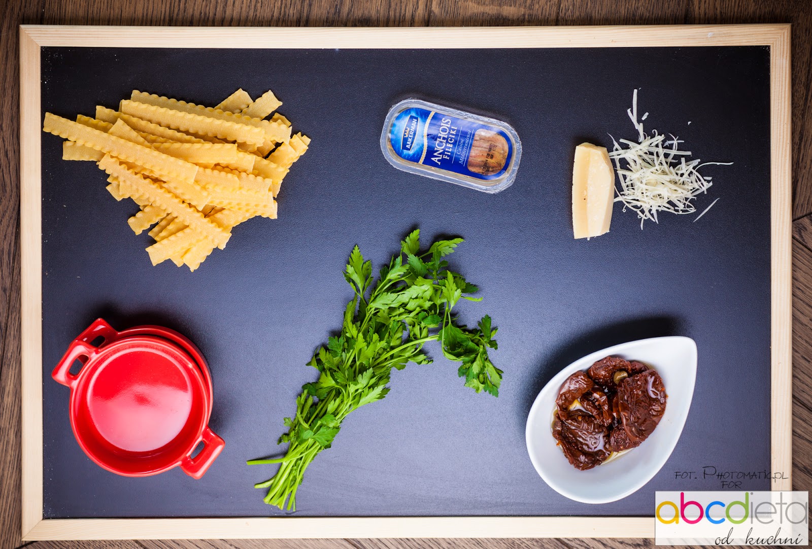 Prosty jak barszcz i pyszny ;) Zapiekany makaron z filecikami anchois, natką pietruszki i suszonymi pomidorami to moja propozycja na dzisiejszy obiad - obiad w 15 minut. Pycha! A jak wam się podoba?